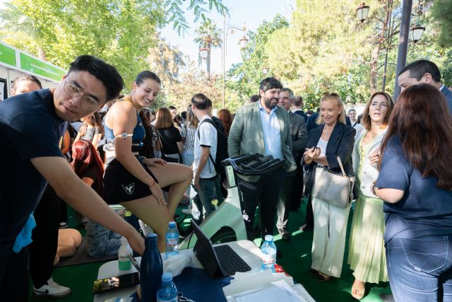 "En una semana tan especial y excepcional como esta, sacamos la universidad a la calle, mostrando la ciencia y la investigación que hacemos, para que los alumnos puedan visualizarlo y comprender que vamos más allá de unas aulas de enseñanza teórica", ha destacado Josefina García, quien ha visitado los diferentes stands de la Universidad Católica, junto con Fernando López Miras, presidente de la Región de Murcia, y Juan María Vázquez, consejero de Medio Ambiente, Universidades, Investigación y Mar Menor.