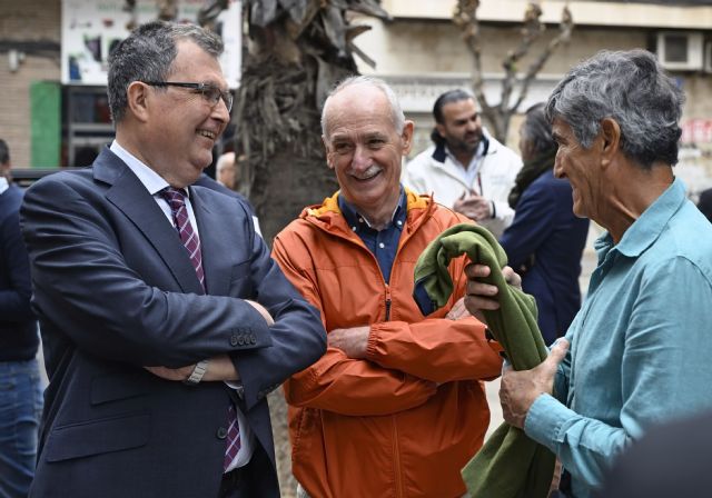 El alcalde de Murcia, José Ballesta, junto al presidente del club grana, Felipe Moreno, acompañados por miembros de la corporación municipal, representantes de la Comisión Histórica, la Federación de Peñas, antiguos jugadores y aficionados, han participado en el acto que reconoce a uno de los símbolos deportivos más queridos de la ciudad.