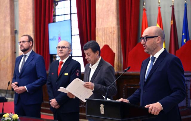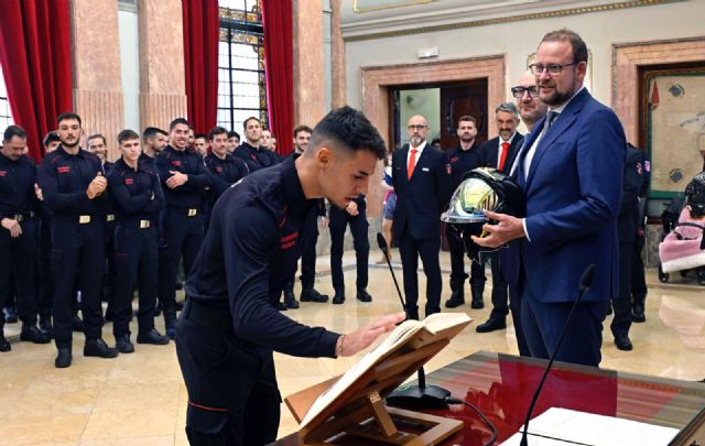 El acto de toma de posesión, celebrado en el Ayuntamiento de Murcia, ha estado presidido por el concejal de Desarrollo Urbano y Ciudad Inteligente, José Guillén, y ha contado con la presencia de los ediles de Gobierno Abierto, Promoción Económica y Empleo, Mercedes Bernabé, y de Movilidad, Gestión Económica y Contratación, José Francisco Muñoz, que han acompañado a los nuevos bomberos en su incorporación definitiva a la plantilla municipal.