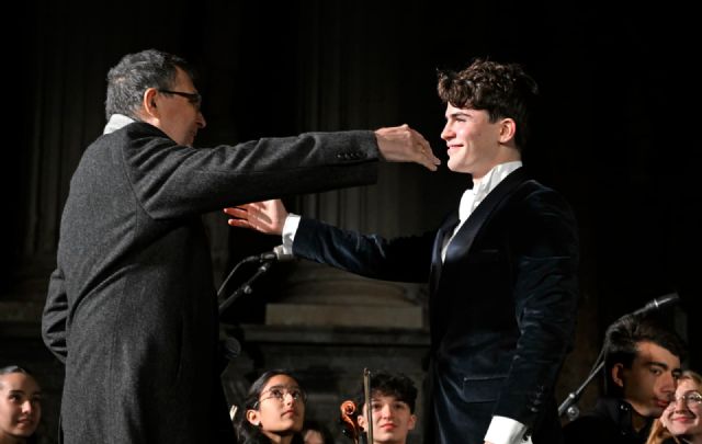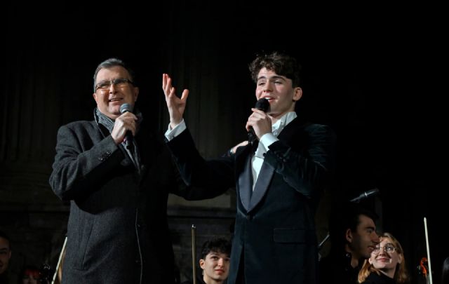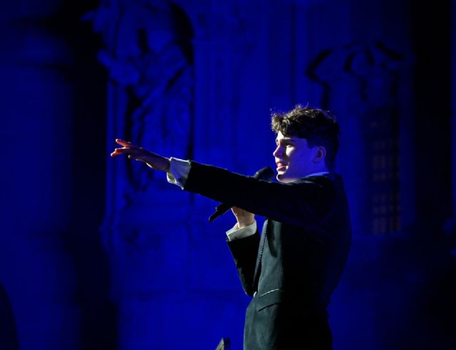 Martín Savi, junto al maestro Rubèn Catalán, al frente de la Orquesta Sinfónica de la UCAM, protagonizó una puesta en escena de gran formato que combinó repertorio navideño universal con efectos de nieve, humo y fuegos artificiales diseñados para convertir el momento en una vivencia inolvidable. El programa reunió títulos emblemáticos como Noche de paz, Feliz Navidad, All I Want for Christmas, El mundo, Delilah, O sole mio, Me va, me va y el tradicional Brindis, culminando con un apoteósico "Canto a Murcia", más conocido como "La Parranda", que hizo vibrar a toda la Plaza Belluga.