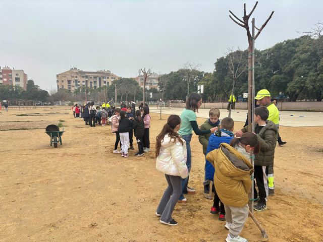 En el acto han participado el concejal del ramo, José Guillén, y la edil de Educación y Atención a la Ciudadanía, Belén López, así como los escolares del centro. Durante la jornada, los 75 alumnos de 3º de Educación Primaria han colaborado en la plantación de los árboles, con ayuda de técnicos del Servicio de Parques y Jardines. Además, han recibido formación sobre los beneficios de la vegetación en zonas urbanas y han concluido mostrando su compromiso con el respeto y cuidado del medio ambiente al convertirse en 'Guardianes de los árboles', distintivo que concede el Ayuntamiento de Murcia a todos los escolares que participan en esta iniciativa municipal.