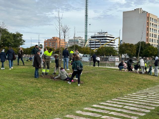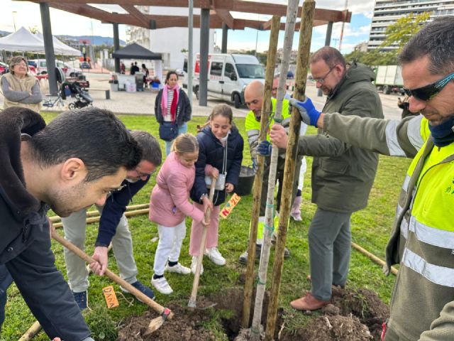 "El objetivo del Ayuntamiento de Murcia con esta actividad no es sólo reforestar y crear bosques urbanos. Es, además, crear conciencia sobre la importancia de los árboles y de cuidar nuestro entorno durante una jornada de convivencia familiar y vecinal", ha explicado el concejal de Desarrollo Urbano y Ciudad Inteligente, José Guillén, quien ha participado en la actuación junto al presidente de la Junta Municipal, José Antonio Cuevas.