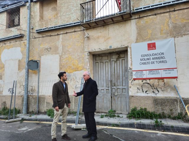 El Ayuntamiento avanza en el proyecto de recuperación integral del Molino Armero, en la pedanía de Cabezo de Torres, después de que la Comunidad Autónoma haya iniciado el procedimiento para su declaración como Bien de Interés Cultural (BIC), bajo la figura de Lugar de Interés Etnográfico, a petición expresa del Consistorio. El concejal de Planificación Urbanística, Huerta y Medio Ambiente, Antonio Navarro, y el director general de Patrimonio Cultural, Patricio Sánchez, han visitado esta mañana este inmueble símbolo de la Huerta de Murcia.