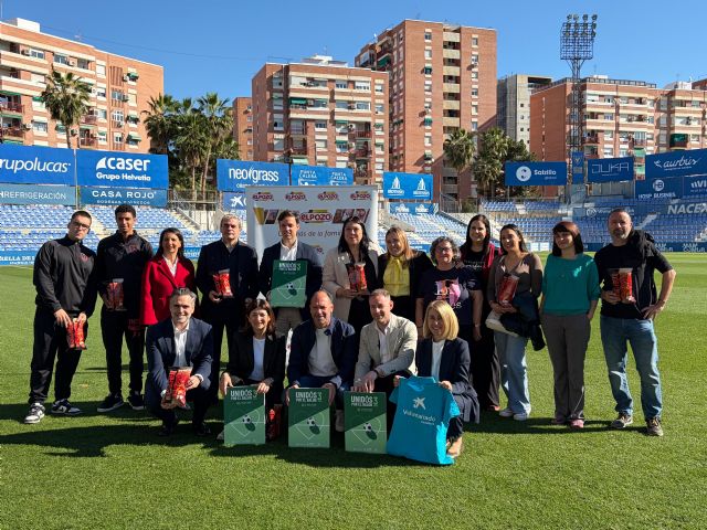 El concejal de Deportes, Miguel Ángel Noguera, ha presentado la iniciativa social "Unidos por el fútbol" junto a la directora regional de CaixaBank, Loles Petit; el director de metodología del UCAM Murcia C.F, Antonio Paredes, y diferentes empresas del ámbito regional, que apoyan este programa. El acto ha tenido lugar en el Estadio Heredia 21 La Condomina.