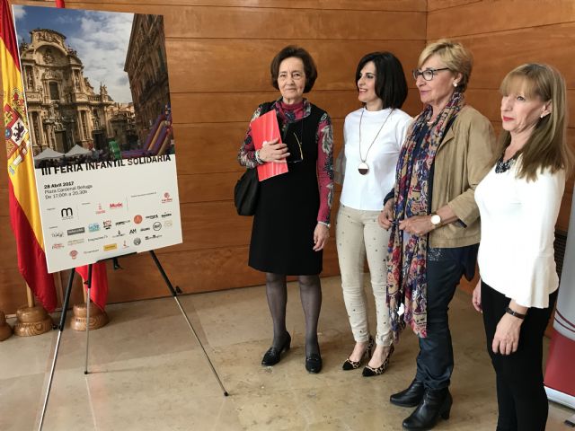 La concejala de Comercio, Organización y Relaciones Institucionales, Maruja Pelegrín, ha presentado esta mañana la III Mini feria infantil solidaria a favor de Cáritas organizada por la Asociación de Comerciantes Murcia Centro Área Comercial que se celebrará este viernes en la Plaza del Cardenal Belluga.